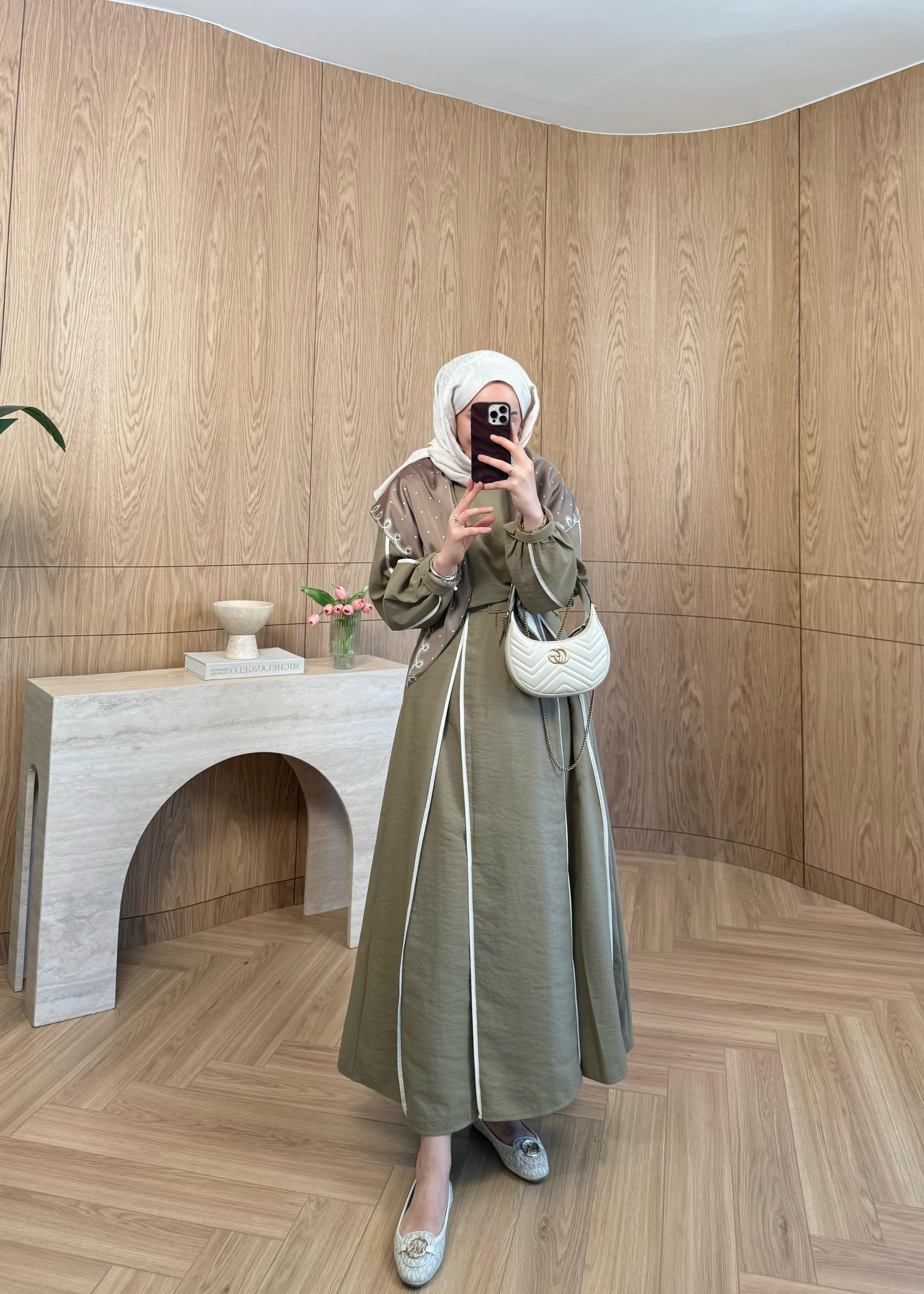 Biyeli Cupra Elbise Olive (5729)