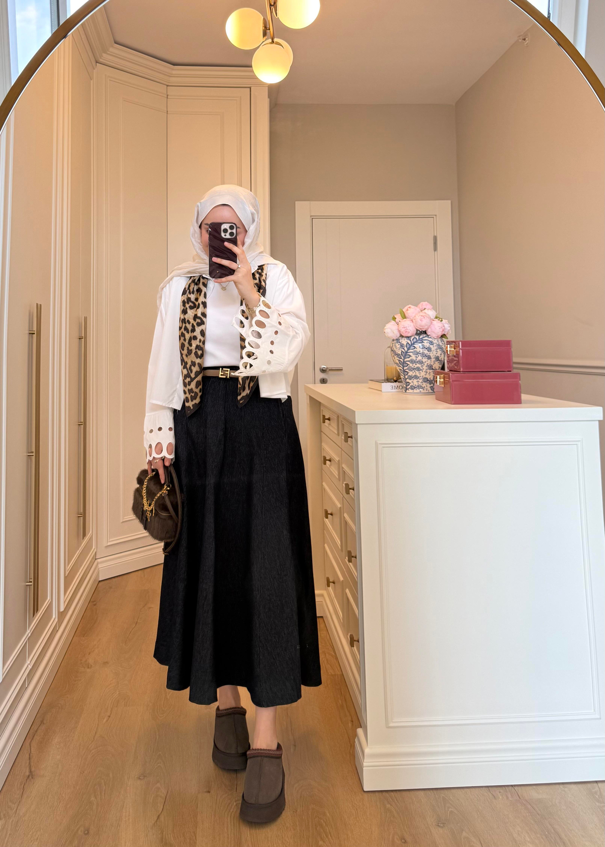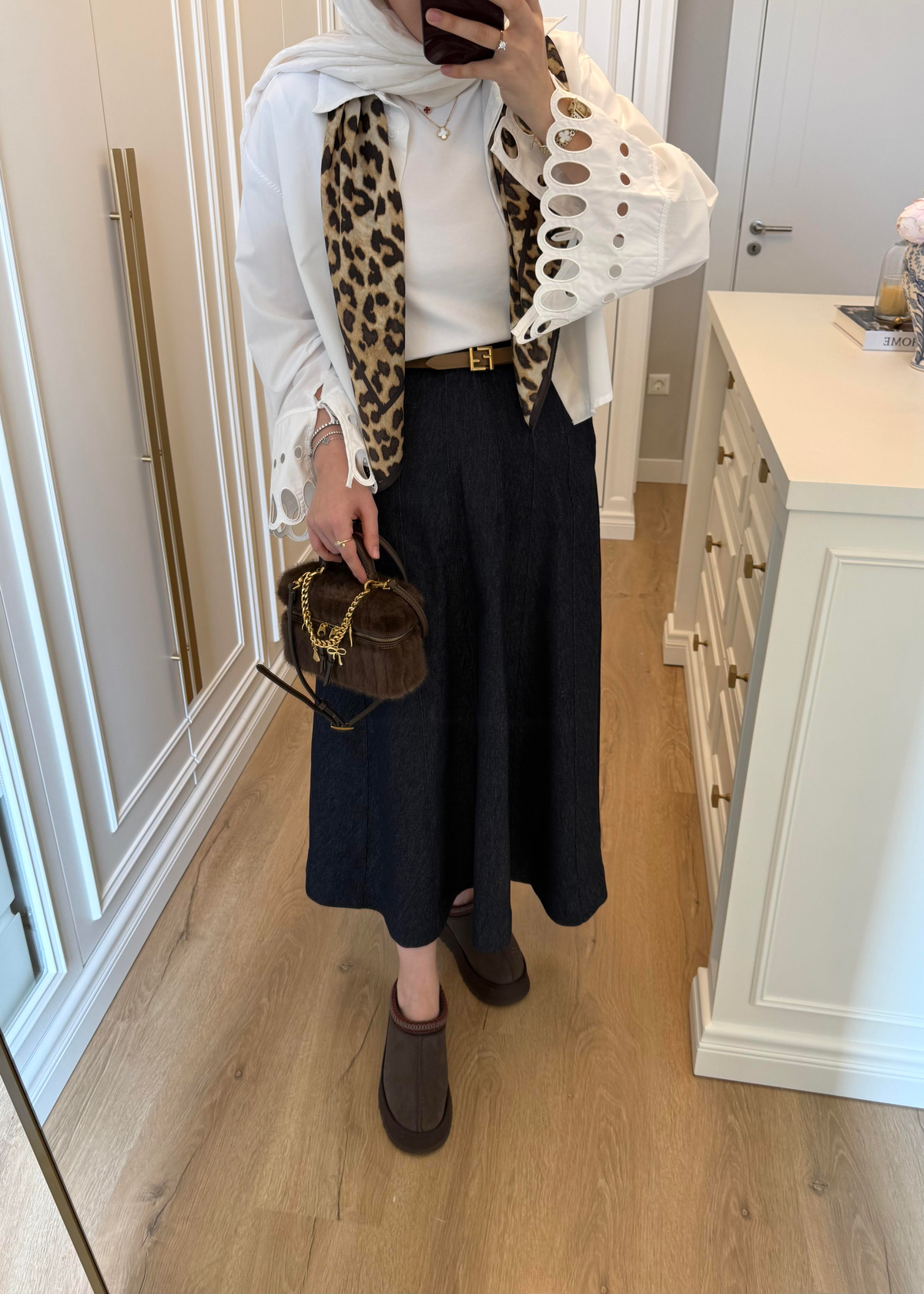Dilimli Denim Etek Mürdüm Dilimli Denim Etek
