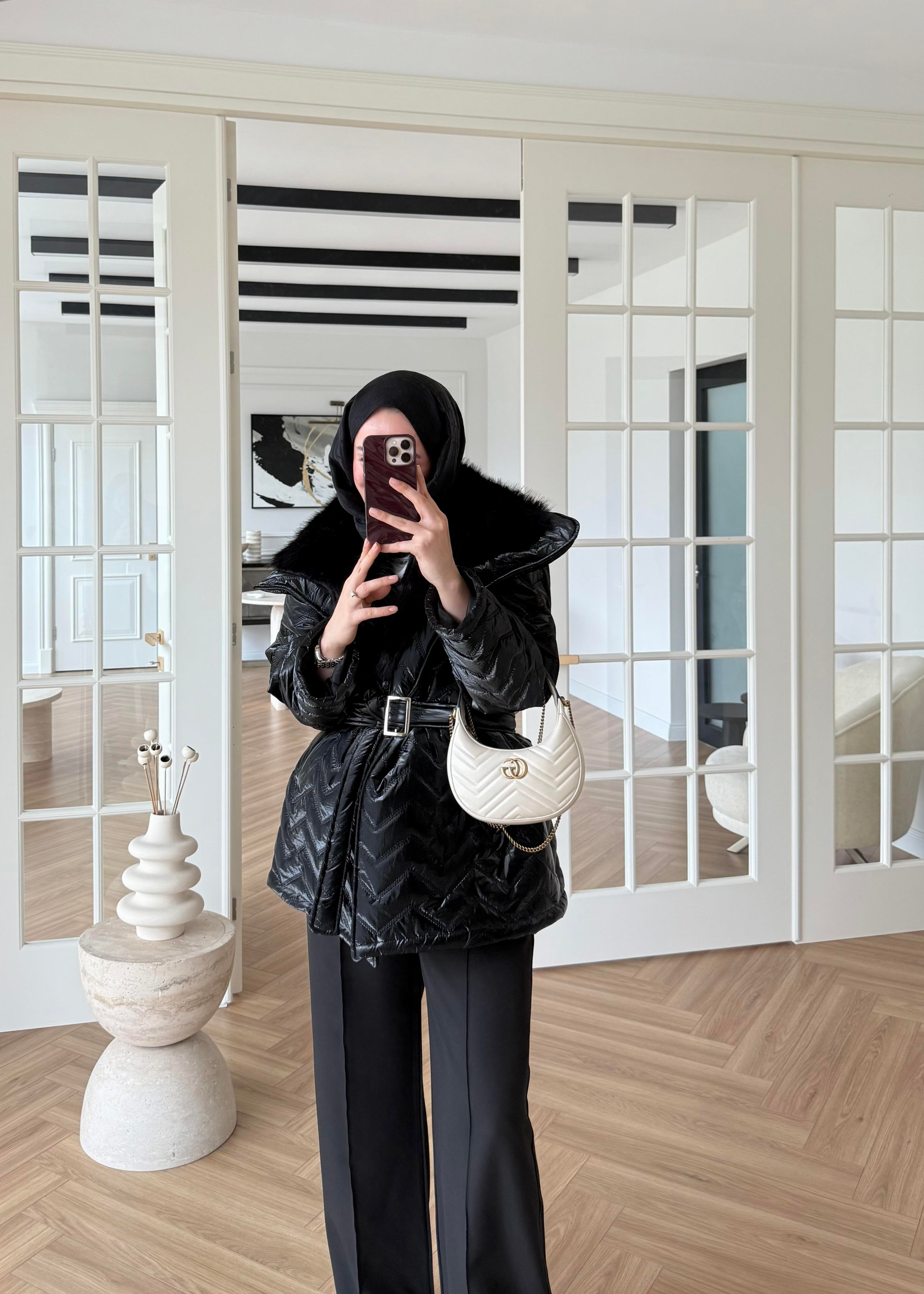 Ürün Özellikleri: Kürklü rugan kumaştır, yakasında kürk detayı vardır ,kemeri mevcuttur, içi komple astalıdır, iki yanında cep detayı bulunur