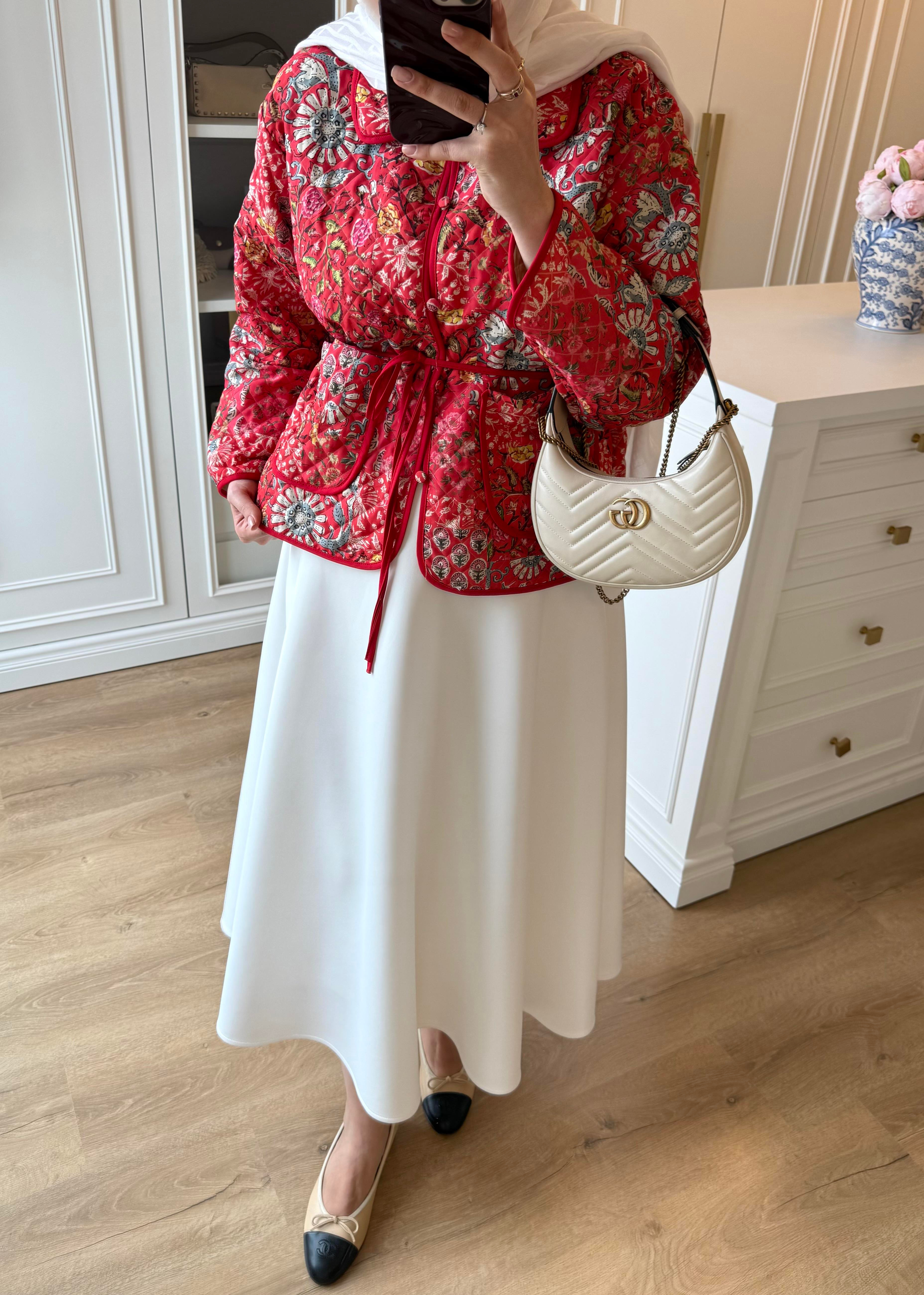 Ürün Özellikleri: Jakar kumaştır. seyyar kuşaklıdır,ceplidir.