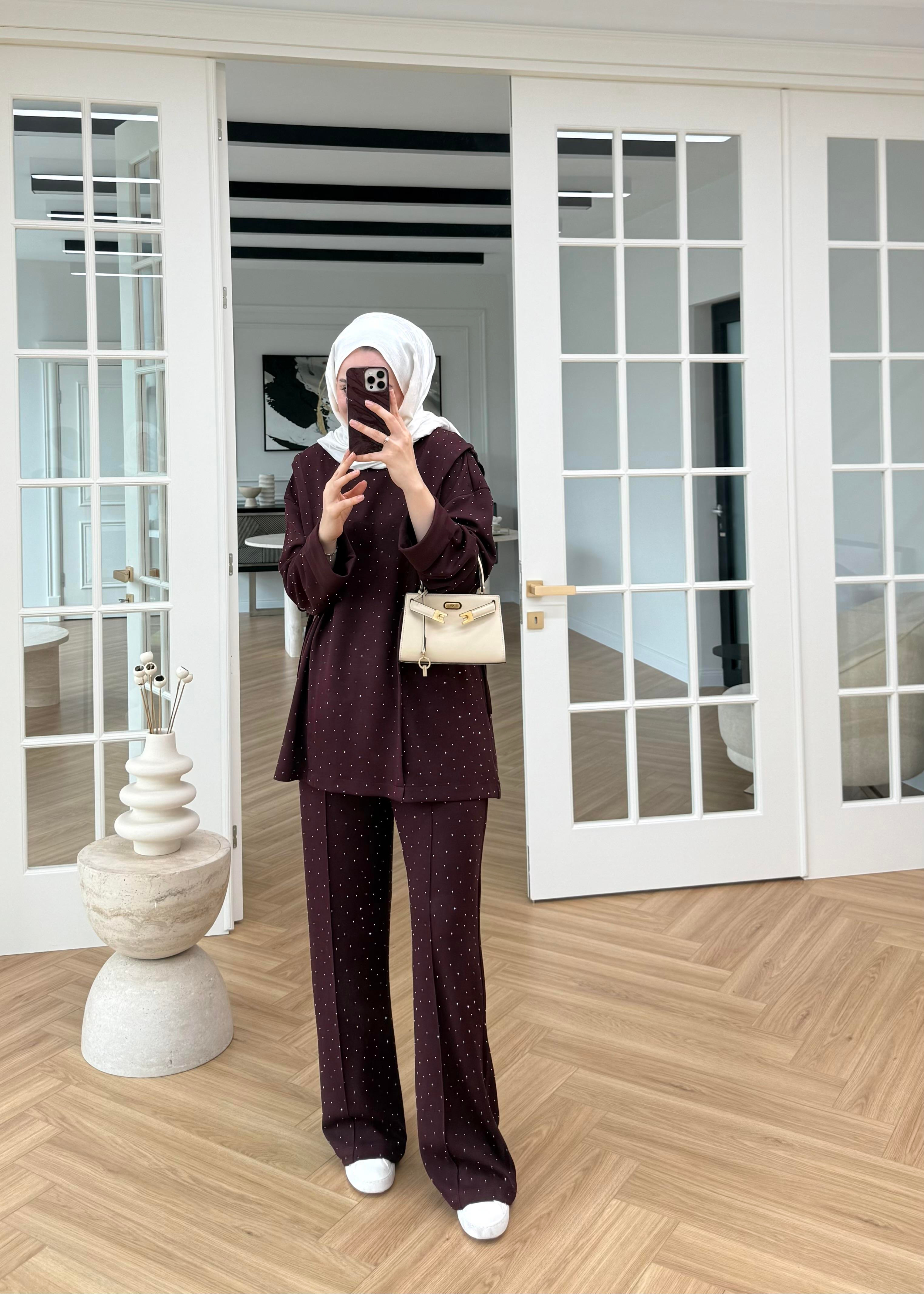 Ürün Özellikleri: Oysho kumaş, tamamen taş detaylı. Üst bluz yandan ayarlanabilir bel detaylı olup pantolon beli lastiklidir