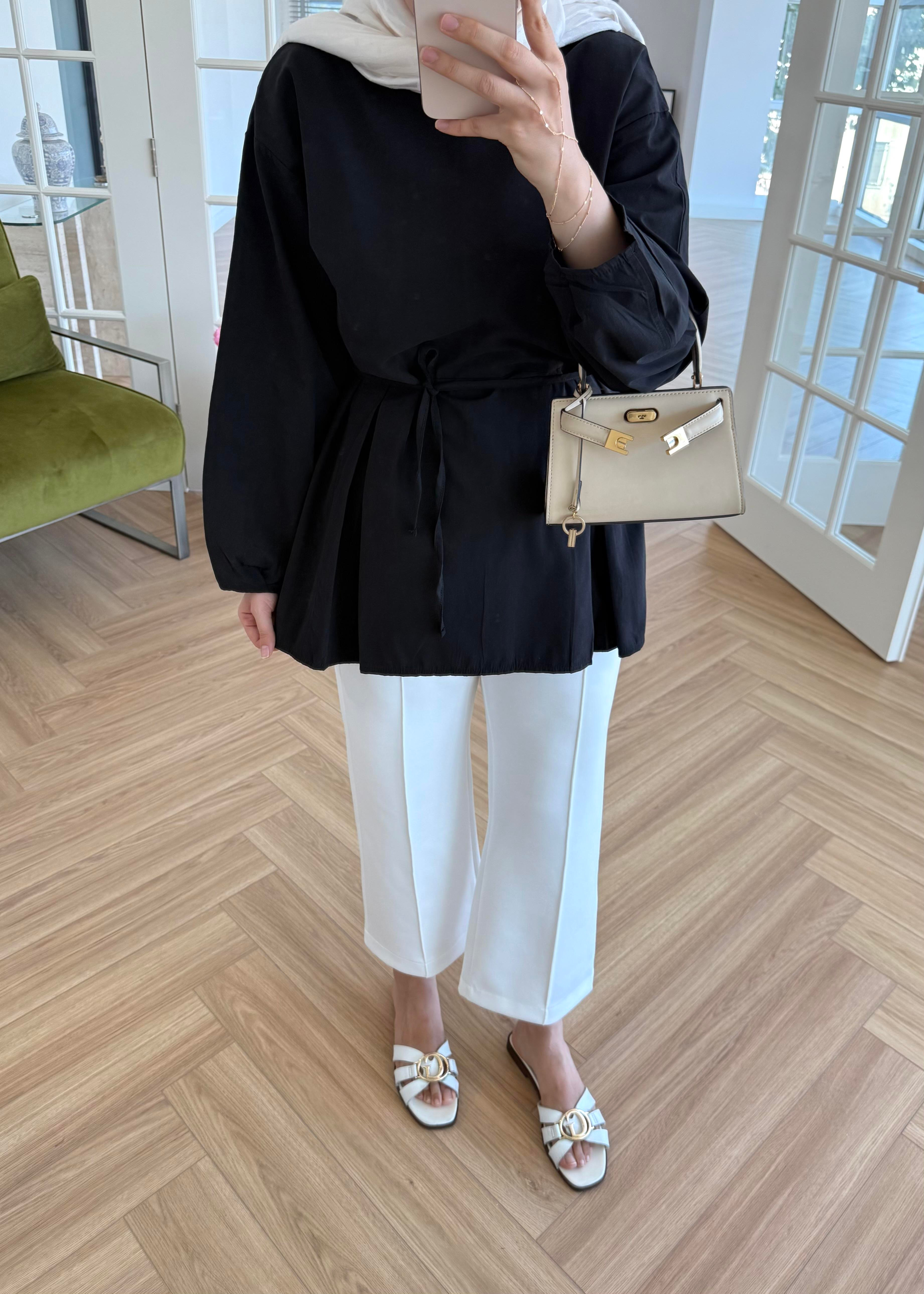 Pile Detaylı Poplin Gömlek Siyah (4965)