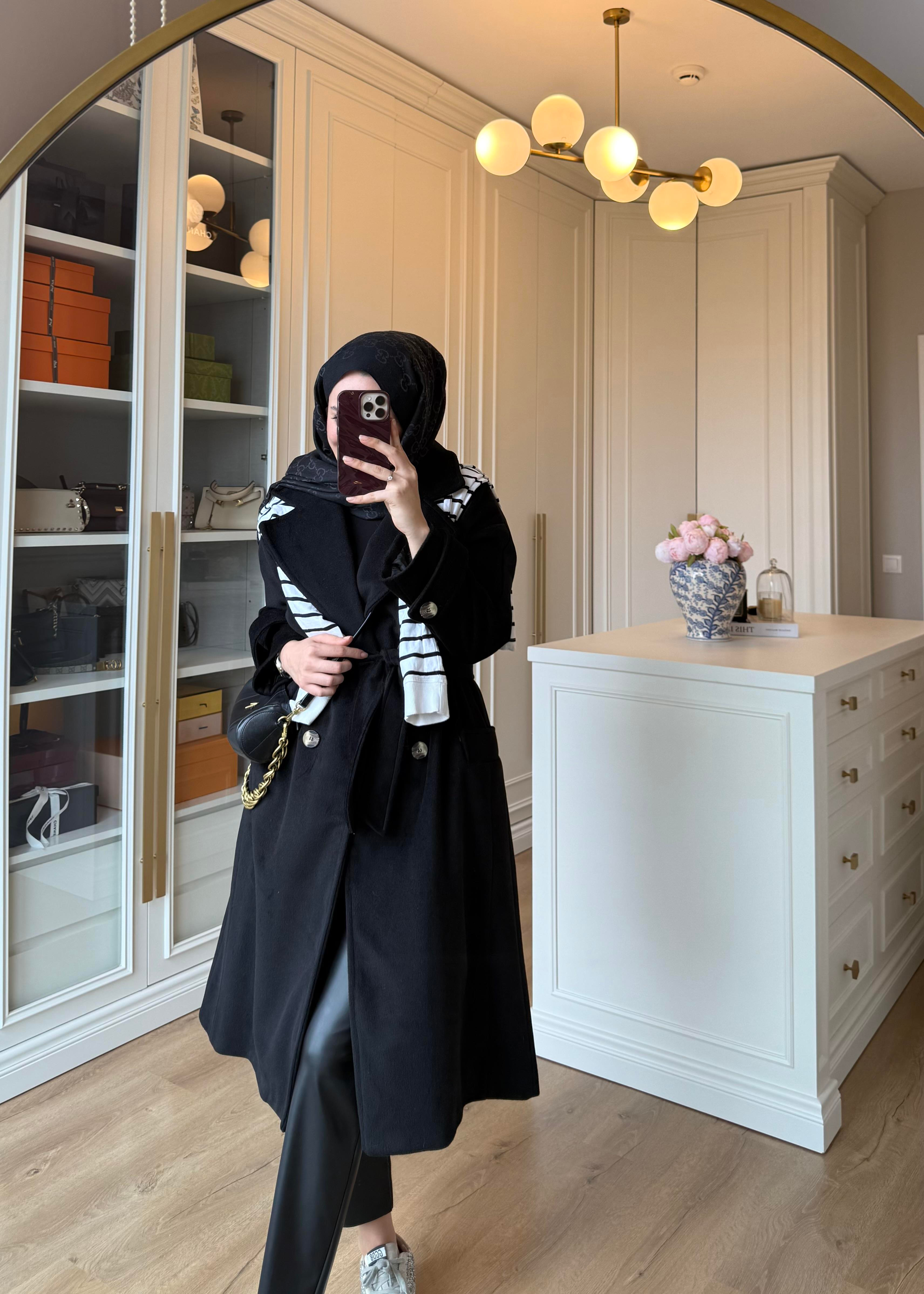 Premium Oversize Kaşe Kaban Siyah (5231)