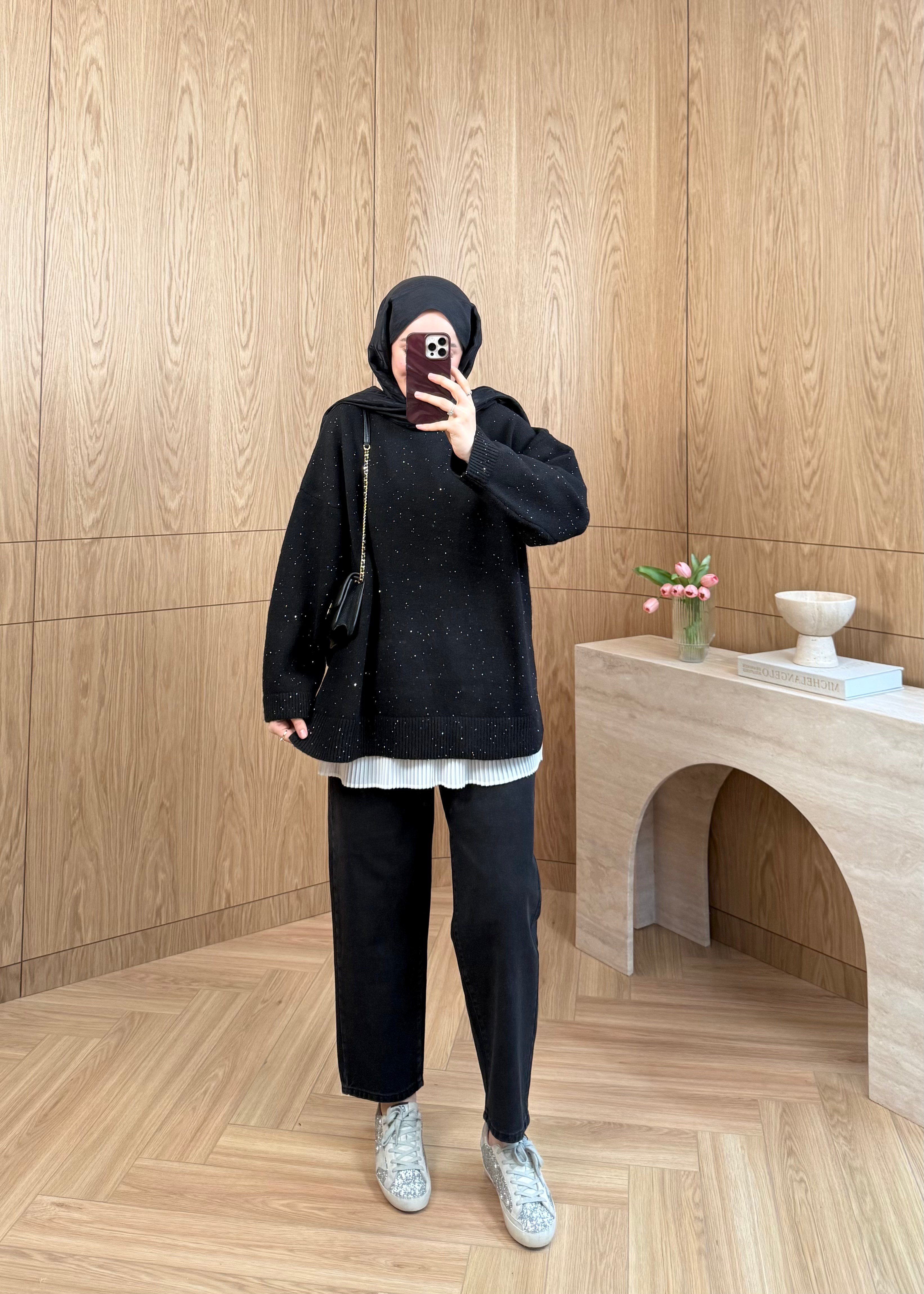 Pullu Triko Kazak Siyah