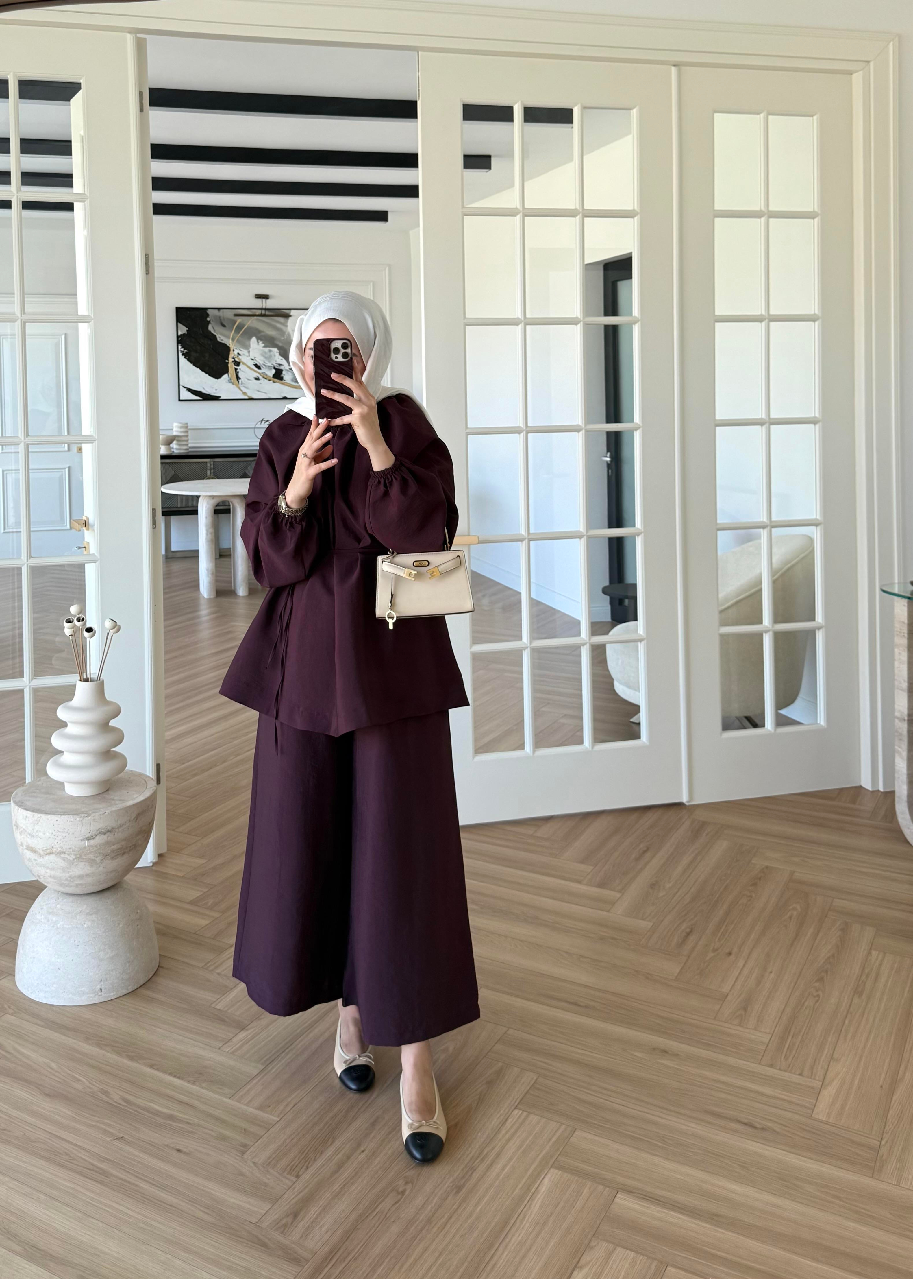 Ürün Özellikleri: zara cupra kumaştır. Boyun ve bilek kısımlarında lastik detayı bulunur, pantolon bel lastiklidir, ince biye kemeri mevcuttur.