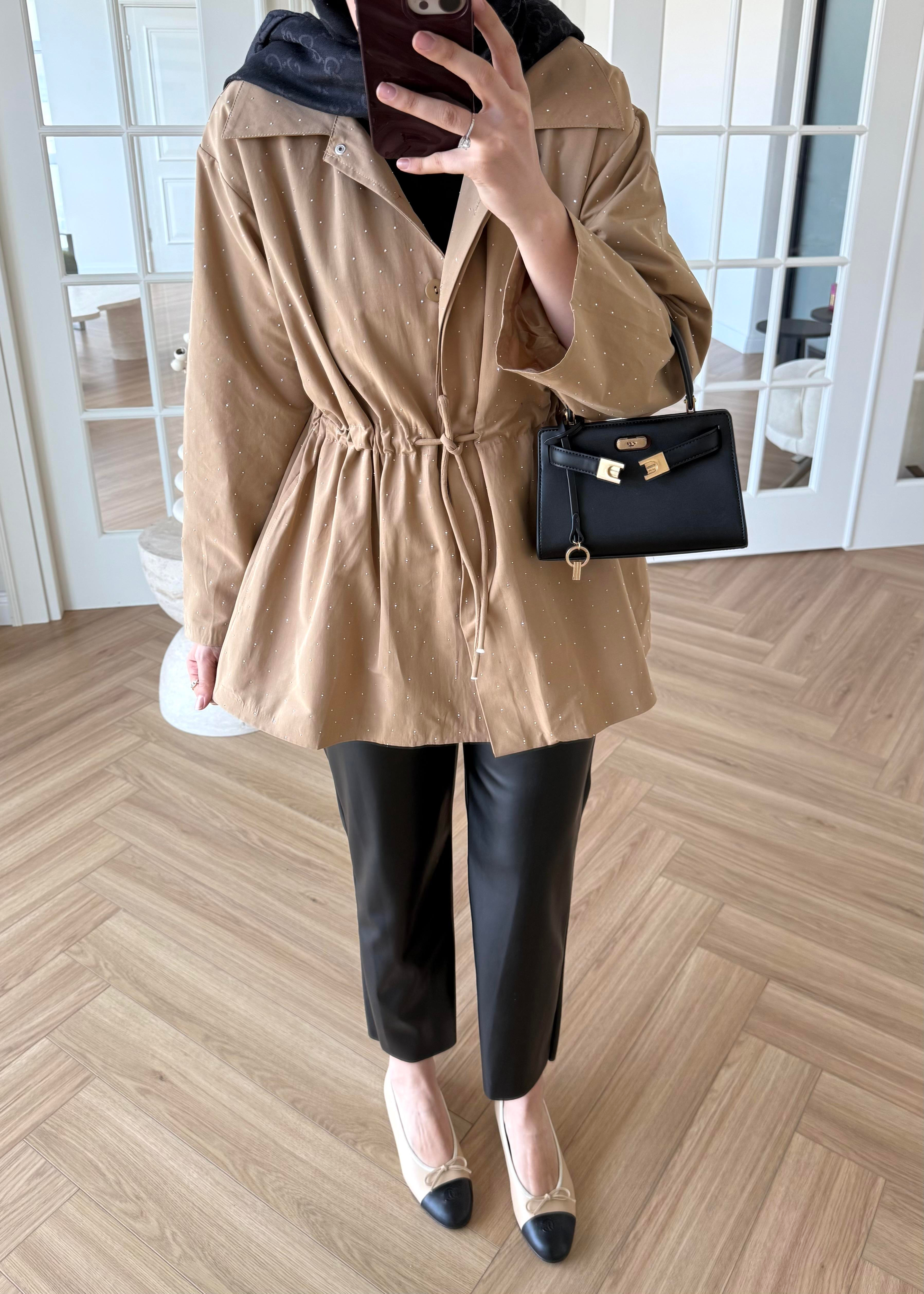 Ürün Özellikleri: Önü düğmelidir. belinde büzgü kemer mevcuttur. taş detayları mevcuttur. iç kısmı astarlıdır.