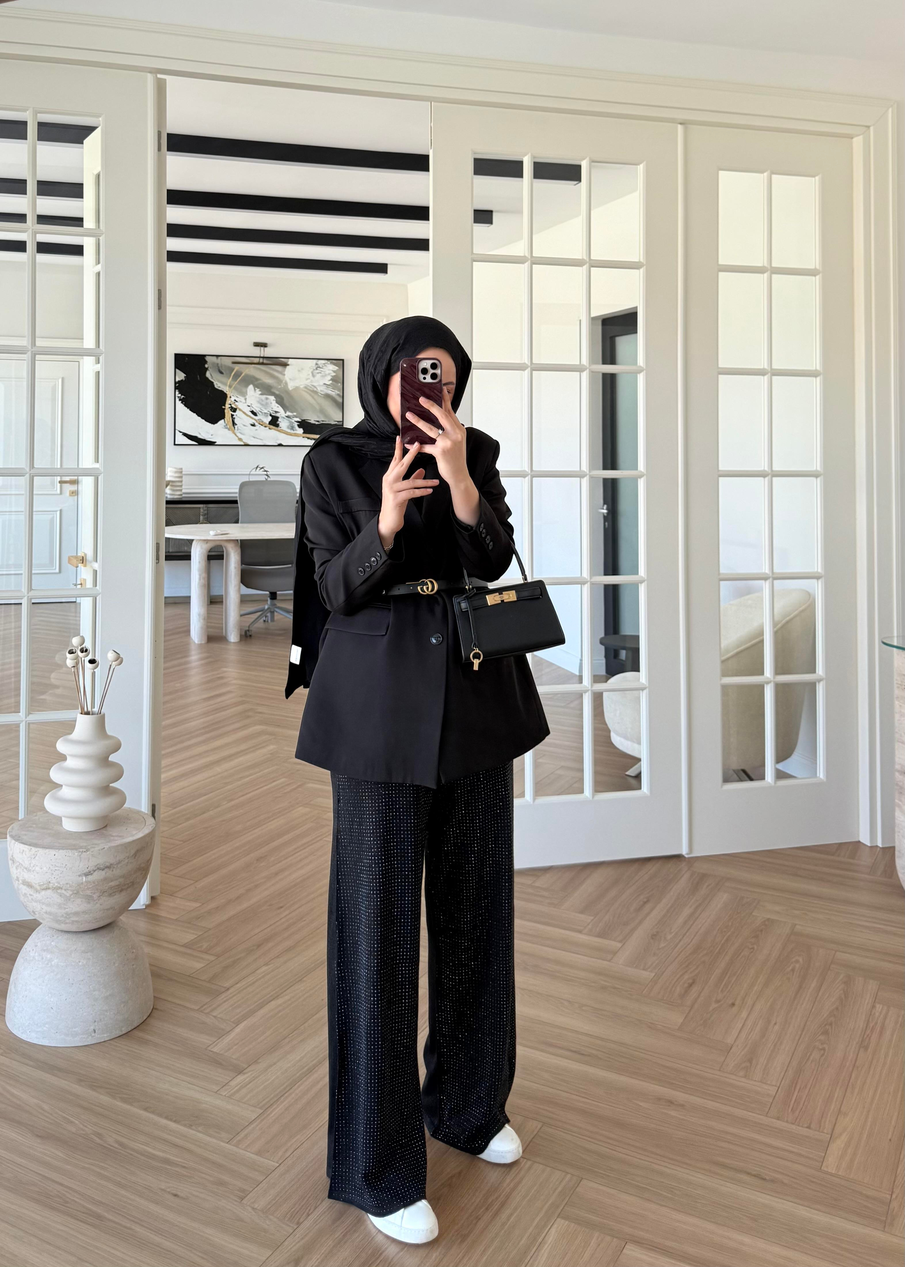 Ürün Özellikleri: Simli triko kumaş , bel lastikli